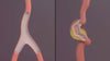 The image above shows a healthy artery on the left side compared to a compromised artery on the right side.