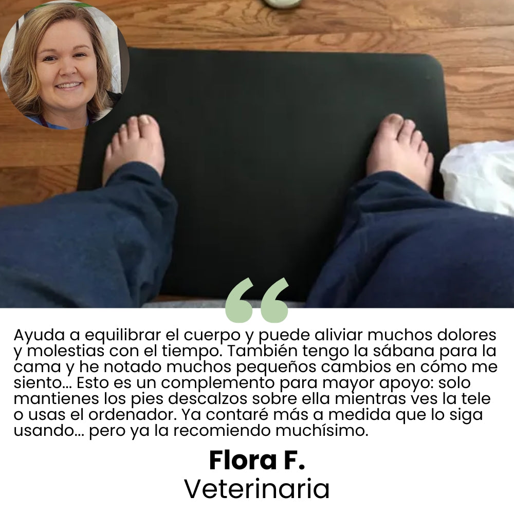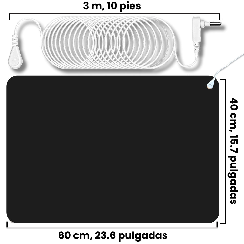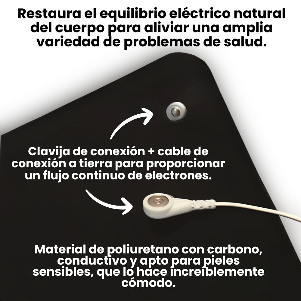 As soon as you touch the Mat’s surface with any part of your skin, all the “dirty electricity” that has crept into your body from your electronic devices (phone, computer, television, microwave, earphones, hair dryer, electric/hybrid car, etc.) will instantly be removed, escaping back into the earth, restoring your body’s natural electrical balance.