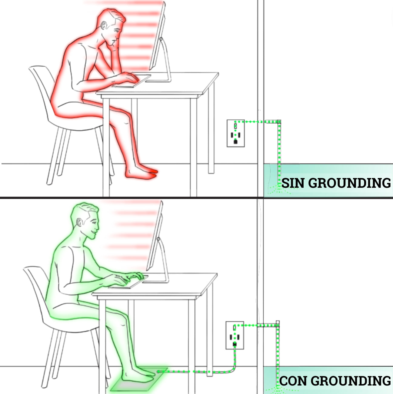 From the outside, the effects of being ungrounded may be hidden, but internally, there's a dangerous reaction taking place within our bodies, as excess electrons from electronic devices have nowhere to escape, they wreck havoc on our cells & internal functioning.
