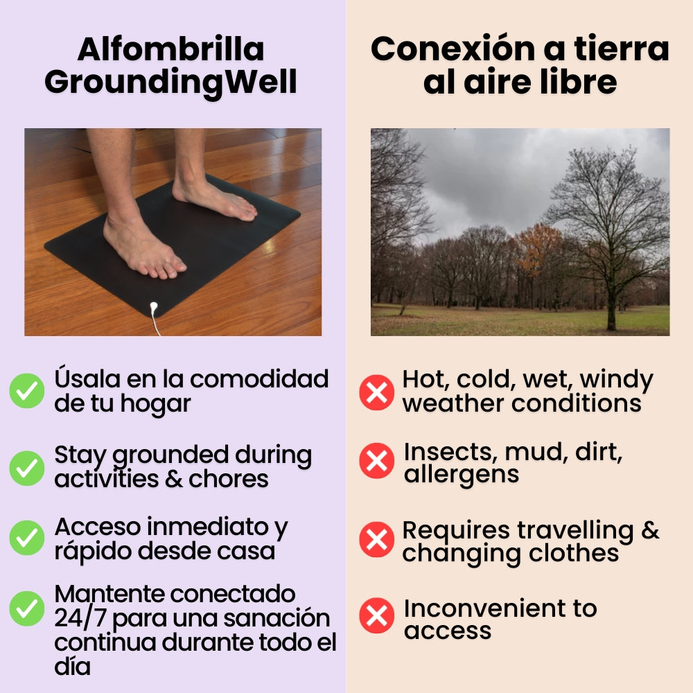 When your skin touches the GroundingWell Mat’s conductive surface, your body is directly connected to the earth, providing the same electrical effects as touching the earth outside.